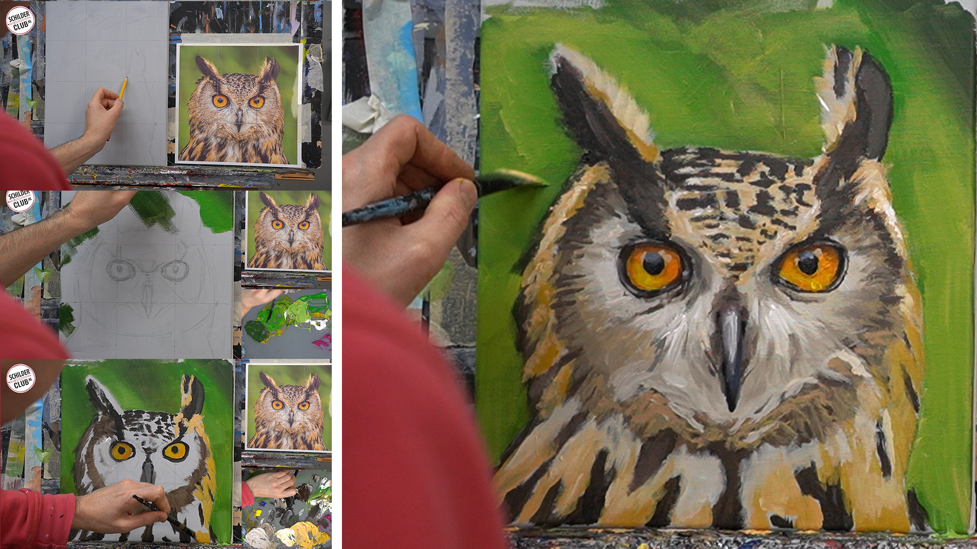 In deze tutorial gaan we een uil schilderen met acrylverf. Eerst zetten we de schets op met potlood. Dan gaan we een zachte achtergrond creëren en vervolgens schilderen we de uil in.