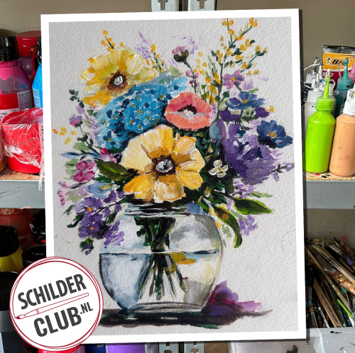 Live online schilderles met Corrie Leushuis: vaas met bloemen (acryl)