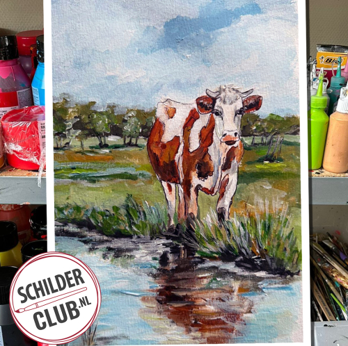 Live online schilderles met Corrie Leushuis: koe in de wei (acryl)