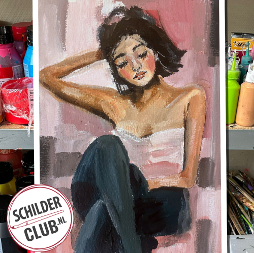 Live online schilderles met Corrie Leushuis: mooie dame (acryl)