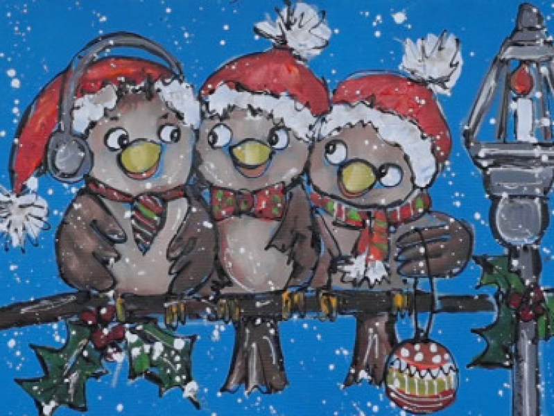 Kerstvogeltjes | Acrylverf | Corrie Leushuis