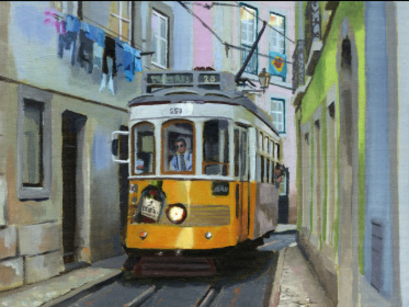 Tram in Portugal | Acrylverf | Toon Nagtegaal