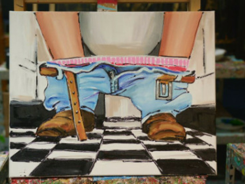 Man op de WC | Acrylverf | Corrie Leushuis